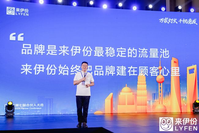▲来伊份第七届合伙人大会开幕6月26日,来伊份第七届合伙人大会在上海盛大启幕。在这场以“万家灯火 千帆竞发”为主题的行业盛会上,来伊份创始人、董事长施永雷以及各业务板块负责人分别围绕品牌、产品以及企业的发展与机遇等方面进行了分享,并在与现场来自全国各地超200位加盟商代表的对话中着重强调了“万家灯火”对于来伊份集团的重要战略意义。合伙人大会的召开,为来伊份未来的发展奠定了基调,也为所有来伊份的合作伙伴指明了发展的方向。推动“万家灯火”,共探市场新机遇品牌的发展要经历市场不断的洗礼,而业态的生命周期,则直观地反映出品牌在市场中的生命力。在大会开幕致辞中,董事长施永雷回顾了25年来的发展历程,他表示从1999年第一家店开始,到现在的超3700家店,来伊份的商业模式清晰且品牌坚韧。